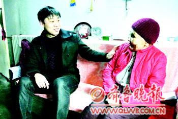 心心酒業(yè)采購部部長韓福林與老人聊天。馬輝 攝